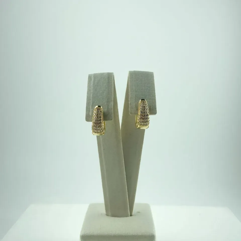 Brinco Gota Vazada em Zircônias Folheado a...