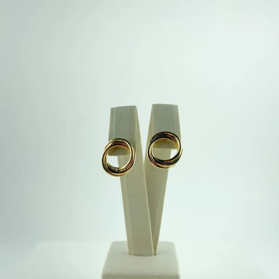 Este par de brincos em formato de dois círculos entrelaçados é uma escolha clássica e simbólica, muitas vezes representando a união, conexão ou harmonia entre duas pessoas.